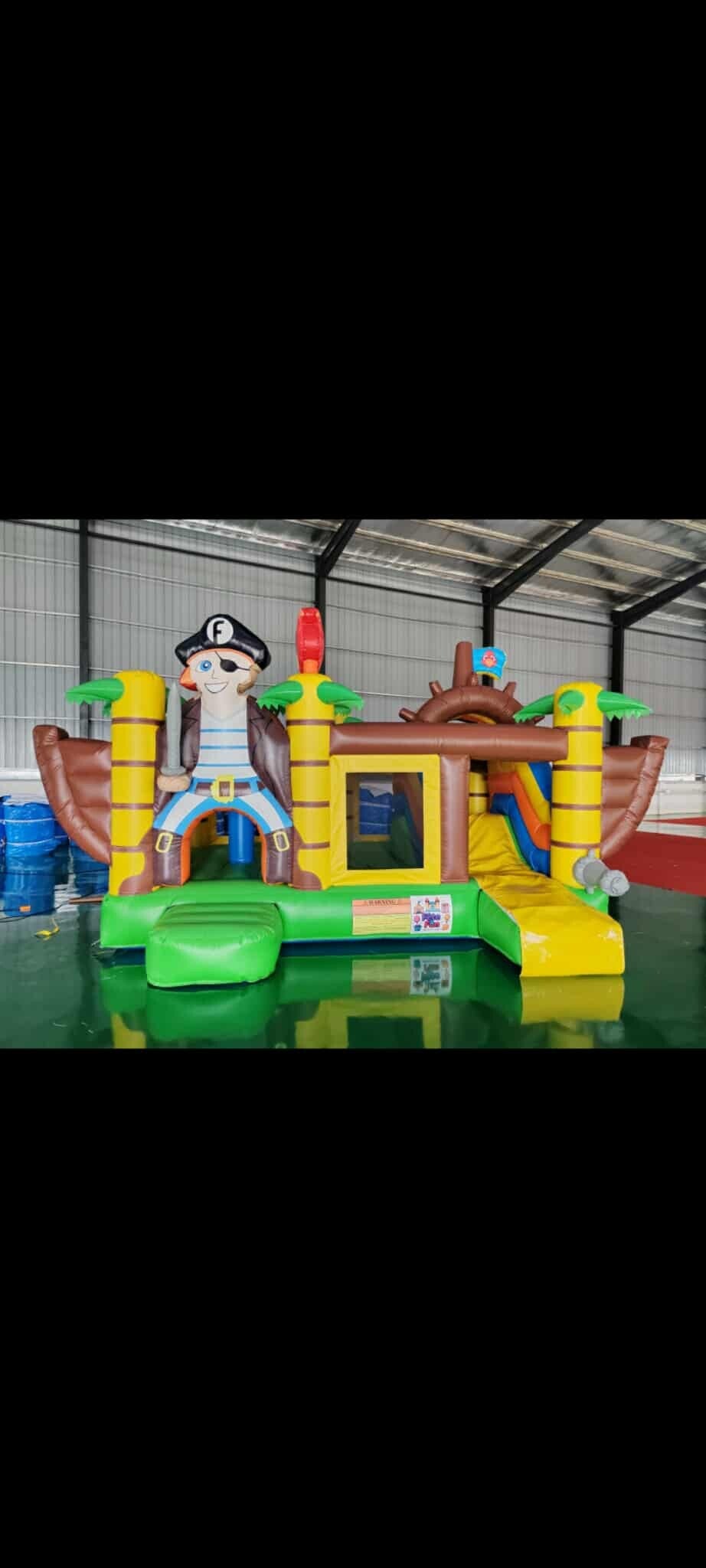 À L’ABORDAGE ! LOCATION CHÂTEAU GONFLABLE PIRATE AVEC TOBOGGAN Faites vivre une aventure inoubliable aux enfants avec ce superbe jeu gonflable thème pirate ! Grand espace pour sauter et s’amuser Toboggan intégré pour encore plus de sensations Décor coloré avec pirate géant, palmiers et gouvernail Idéal pour anniversaires, fêtes, kermesses et événements Les enfants embarquent dans l’univers des pirates pour des heures de rires et d’énergie dépensée pendant que les parents profitent tranquillement. Sécurisé Ludique Parfait pour extérieur ou grande salle Réservez dès maintenant et transformez votre événement en véritable chasse au trésor ! TAILLE 6.80x4.50x3.80